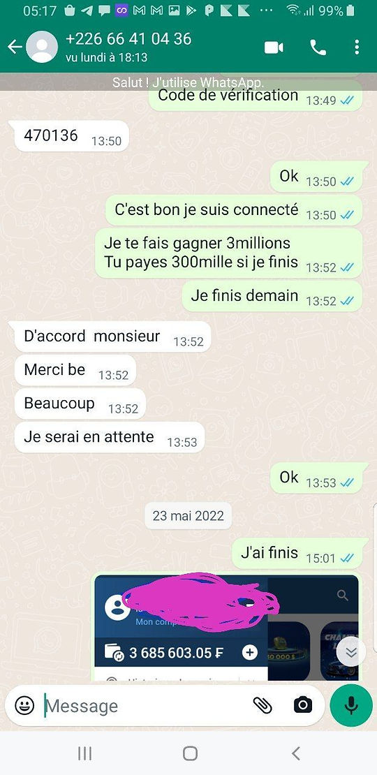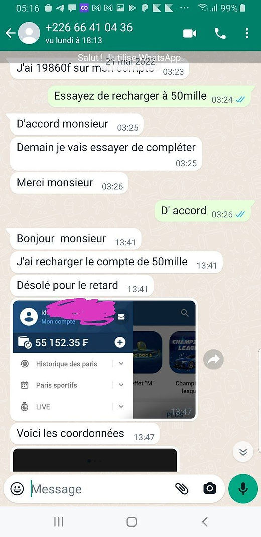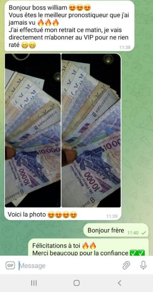 Votre compte est en sécurité et vous bénéficiez de vos gains en au plus 24h de temps . Soyez des hommes responsable dès maintenant.